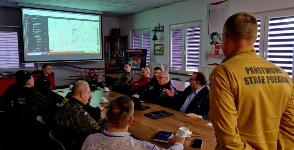 W dniu 17.02.2026 r w Komendzie Powiatowej Państwowej Straży Pożarnej w Kutnie w ramach przygotowań do konferencji naukowej pt. „Kutnowska Odporność Społeczna. Lokalny wymiar globalnych zagrożeń” odbyło się spotkanie podmiotów biorących udział w ćwiczeniach terenowych w oparciu o platformę do zarządzania kryzysowego „JAŚMIN”, które odbędą się w ramach przedmiotowej konferencji. Przebieg ćwiczeń uczestnicy konferencji będą mogli obserwować na ekranie sali kutnowskiego CTMiT.