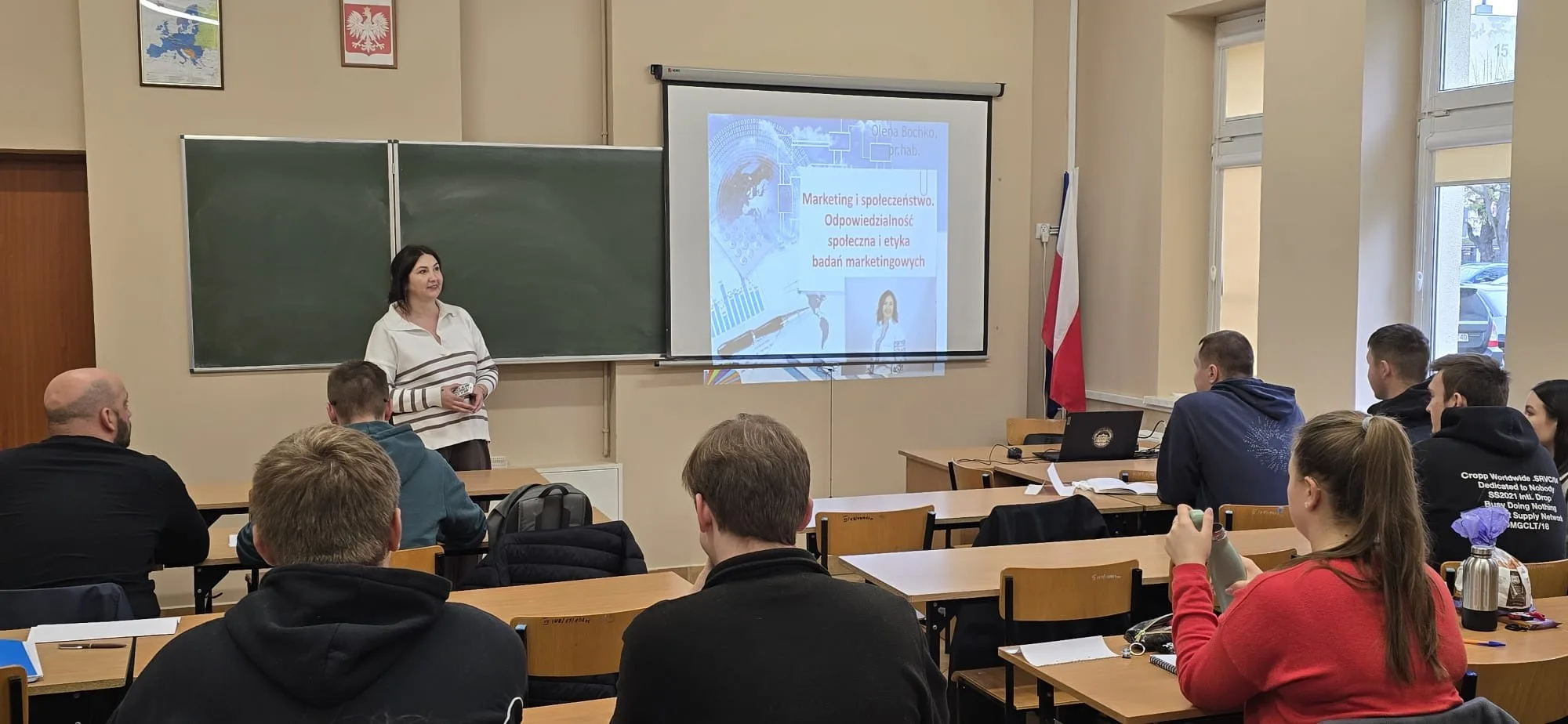 Studenci wydziału zarządzania i studiów inżynierskich – kierunku logistyka, w ramach umiędzynarodowienia kształcenia, z inicjatywy wydziałowego „Koła Naukowego”, mieli możliwość wysłuchania bardzo ciekawych wykładów z zakresu „Marketingu – odpowiedzialności społecznej i etyki badań marketingowych” – w języku polskim oraz „Zarządzania w logistyce produkcji” – wersji angielskiej.