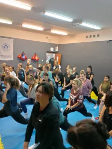 Zwieńczeniem kilkutygodniowego kursu samoobrony było niecodzienne spotkanie – uczestniczki miały okazję poznać Natalię Rybarczyk, mistrzynię świata w taekwondo – były żołnierz zawodowy, trener pilotów F16, trener mentalny, autorka książki „Walcz i Wygrywaj”. Mistrzyni poprowadziła motywujące wystąpienie, w którym podzieliła się swoimi doświadczeniami sportowymi oraz zachęcała kobiety do aktywności fizycznej i dbałości o własne bezpieczeństwo. Następnie odbył się wspólny trening, podczas którego uczestniczki mogły ćwiczyć pod okiem mistrzyni, zdobywając cenne wskazówki dotyczące skutecznych technik obronnych.